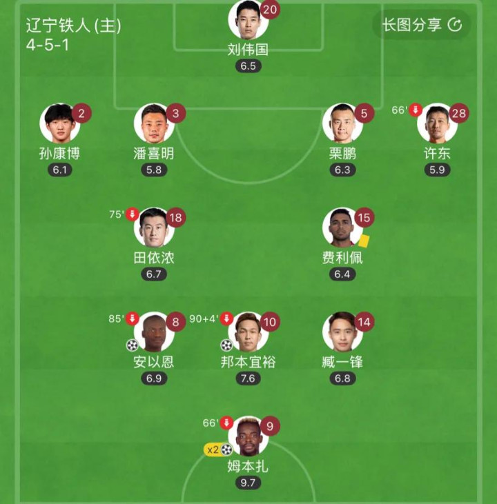 4:2大胜的结果中,辽宁铁人队的前锋姆本扎发挥出色,打进2球立下汗马功劳!这其中李金羽的战术部署是起了绝对作用的。