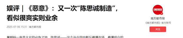 南方都市报|娱评|《恶意》:又一次“陈思诚制造”,看似很爽实则业余