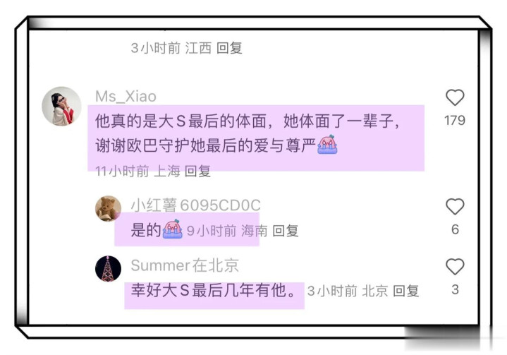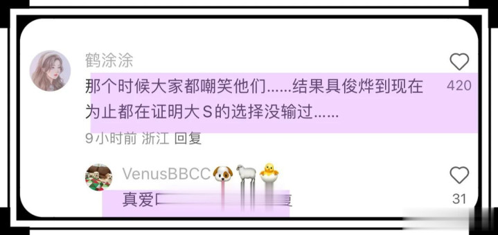 不少大S粉丝看到以后泪奔的,称大S没有选错人,具俊晔给了大S最后的体面,他用他的方式守护大S,也有不少大S粉丝担心具俊晔的状态,怕具俊晔等80岁高龄的母亲百年以后,他会去陪大S!
