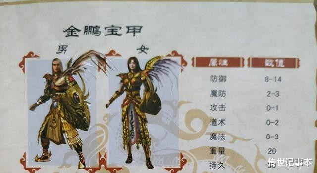 说到金鹏的属性,那更是没得黑。8-14的防御在当时简直就是个BUG,法师穿上直接告别小脆皮时代。而且这衣服最变态的是攻魔道三系加成全都有,虽然每样加得不多,但就这种全面性,在当时的版本里都找不出第二件。最骚的是重量才20,这不就是专门为法师量身定做的么?