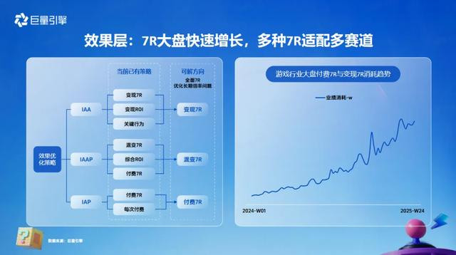 比如针对IAP、IAA、IAAP三类游戏,巨量引擎在「7日ROI」(即7R)的基础上, 分别推出了每付+7R、变现7R等产品,能帮助厂商适配多种不同赛道,更精准地锁定高潜力用户。