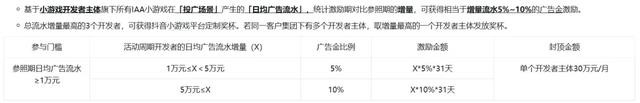 光是这些平台扶持还不算。最近,为了促进小游戏的发展,他们又一次拿出了自身史上最大力度的激励政策,针对IAP/混变、IAA小游戏,分别设置了激励规则,不限新老游戏,甚至不限于抖小首发的产品。