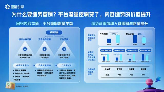 前两者倒不难理解,但造势营销为什么成了一种主流?巨量引擎也给出了答案:平台的流量逻辑变了。