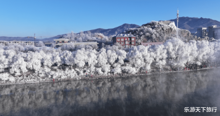 和高山型雾凇(如黄山、峨眉山)多依附高山植被,需要登高才能观赏不同的,位于吉林省吉林市龙潭区乌拉街满族镇的雾凇岛,因为极致震撼的雾凇奇景,被誉为中国四大自然奇观之一。