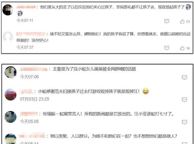 另外,还有网友认为,S家突然提及大S子女,并不是发自内心的关心,只是想要转移小S二女儿画展被群嘲一事罢了,S家不通知孩子去大S葬礼还要和孩子抢遗产,足以看出她们对大S子女的态度——要知道马筱梅几次回应都明确表示S家随时随地可以看孩子,结果根本没人去呀。