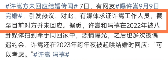 许嵩还在2023年跨年夜被起哄结婚时回应:“可以考虑。”