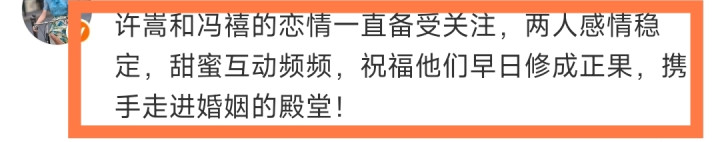 对于许嵩冯禧9月9日结婚的传闻,一大波吃瓜群众纷纷留言表示恭喜祝福,挺好的,铁树开花,开花结果了。