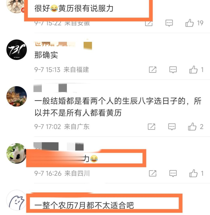 此外也有一部分网友表示,9月9日就是农历七月十八这一天是忌嫁娶的,明星结婚难道都不看日子吗?