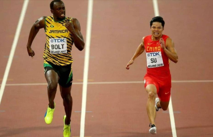 有的人跑得快,有的人跑得远。和人类历史上最夸张的田径怪物比硬天赋无异于以卵击石,但苏炳添有自己的竞争方式。三年之后,在北京鸟巢的田径世锦赛百米半决赛,苏炳添再次与博尔特同组,并且道次紧邻,而这一次,苏炳添完成了对中国人来说罕见的壮举——他凭借出色的前半程能力,在出发之后,便带乱了博尔特的节奏,有一幅被誉为田径的“世界名画”便出自于此。苏炳添在那场比赛中最终以9秒99杀进世锦赛百米决赛,成为第一个闯入世锦赛百米决赛的亚洲选手。