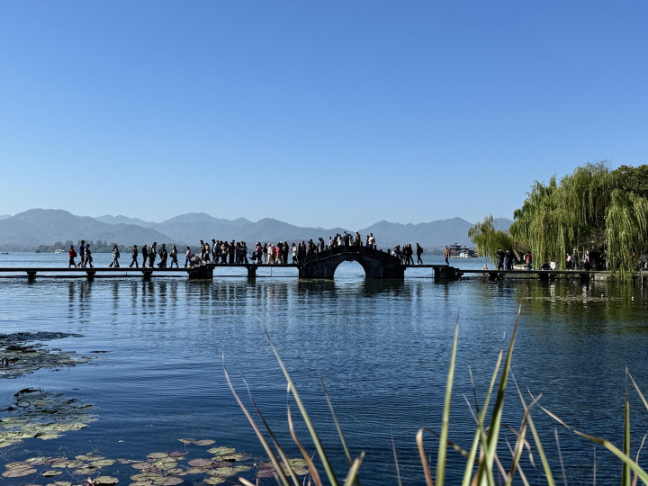 > 忆江南最忆是杭州。半湖秋风半湖月,一茗龙井寄远思。