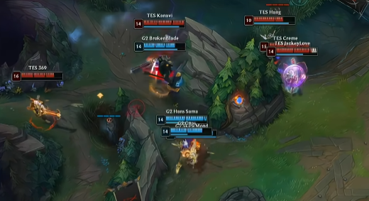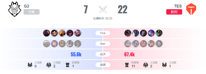 比赛的进程可谓是精彩纷呈。前期,3分钟时,Kanavi的巨魔发挥了重要作用,帮助JKL的芸阿娜获得一血,让TES在比赛初期就占据了优势。14分钟时,双方上路混战,TES上野配合默契,成功打出2换4的战绩,还推掉下路一血塔,经济领先不少。20分钟时,TES拿下厄塔汗并团灭G2,进一步巩固了自己的优势。